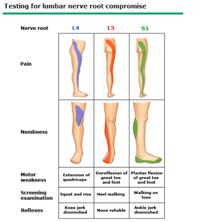 Paresthesia or numbness following a dermatome