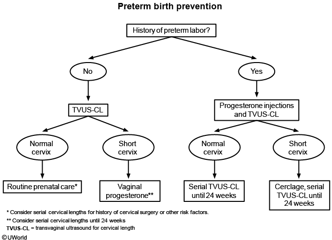 Patients with PPROM at >34 weeks gestation should be delivered as the morbidity and mortality associated with premature delivery decrease after 34 weeks and delivery decreases the incidence of chorioamnionitis. Patients with PPROM at <34 weeks with signs of infection (eg, maternal fever, fetal tachycardia) or fetal compromise should also be delivered. To prevent neonatal group B Streptococcus(GBS) infection, intrapartum intravenous penicillin should be administered to patients with PPROM who are delivered and have either an unknown or positive GBS status. Tocolytics are contraindicated.