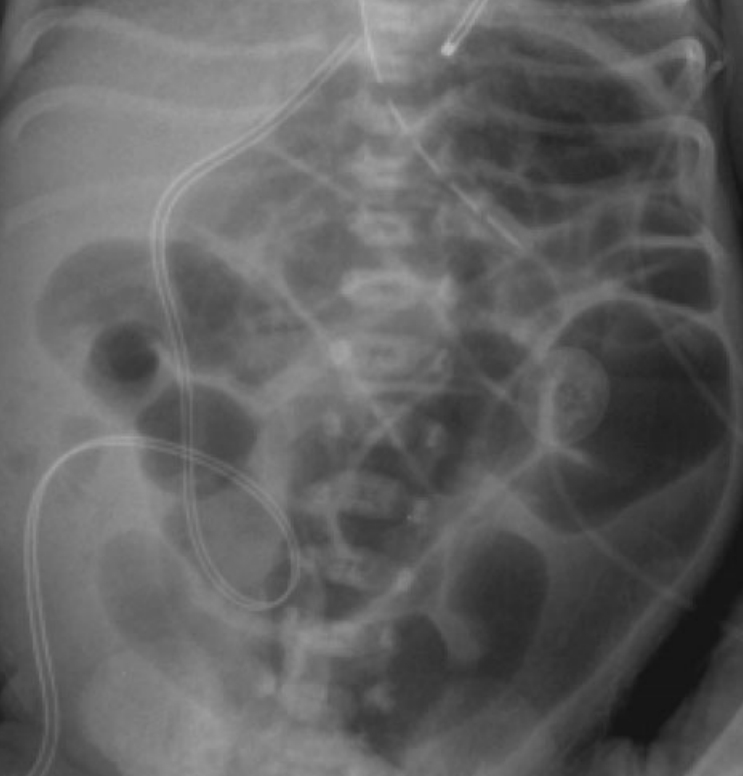 diagnosis: x-ray show transition point and gas filled plug. Echogenic bowel on prenatal ultrasound can be an early hint.