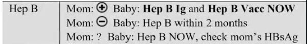 mom unknown: give hep B within 12 hours, test mom, if positive, give HBIG within 7 days