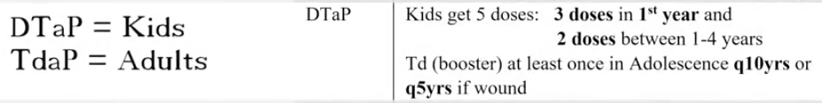 DTaP: 5 doses. Big D = bigger dose
