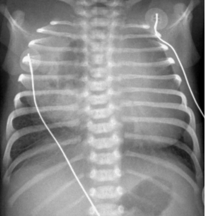 symptoms: you find that the infant is cyanotic, has irregular, labored breathing, and has decreased breath sounds on the right side. You also note decreased tone in the right arm. You provide oxygen and order a stat portable chest radiograph, which is normal.