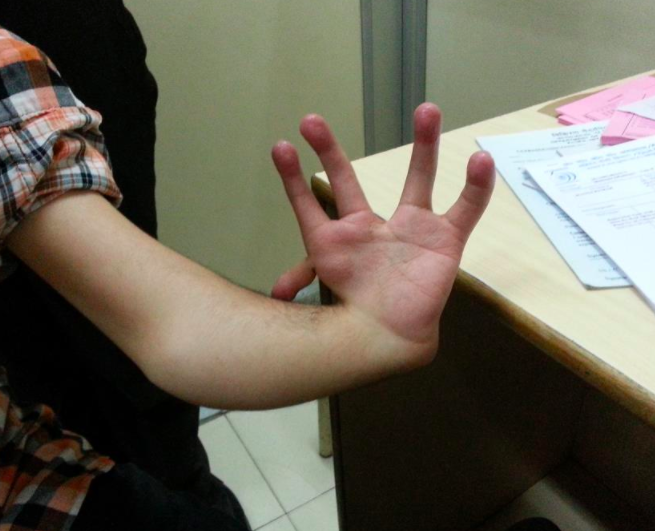 case: A newborn has low sloping shoulders, right hand attached at elbow with agenesis of the forearm, cardiac abnormalities, missing chest wall musculature, and a bifid thumb.,