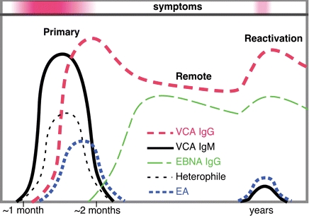 Alternatively, specific antibodies against viral antigens on the EBV can be measured.
