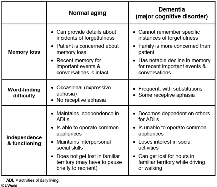 Dementia is a disorder of impaired memory and gradual decrease in cognitive functions. The hallmark characteristic is cognitive deficit with normal consciousness.