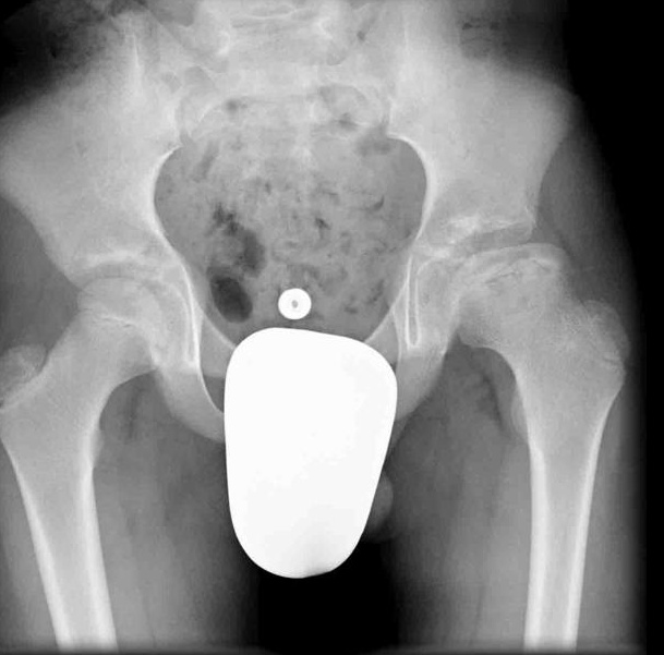 Galeazzi sign, which indicate limb length discrepancies due to a dislocated hip.,