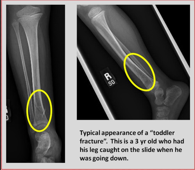 The injury often occurs after a seemingly harmless twist or fall and is often unwitnessed. These fractures will often be presented in a question in regards to worrying about child abuse.