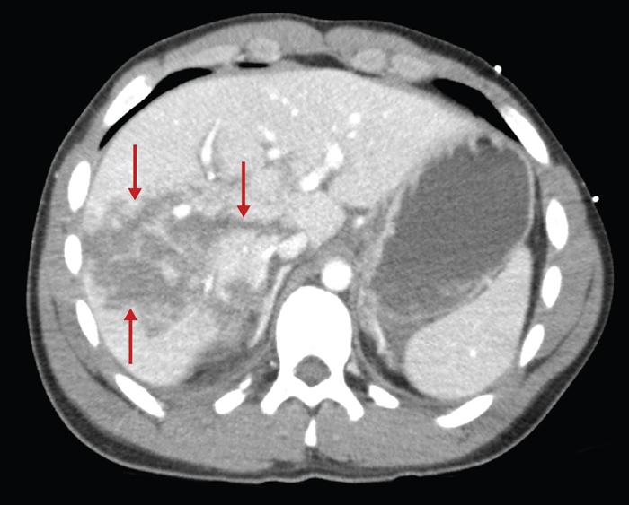 CT scan of the abdomen gives detailed information about the pathology and source of hemorrhage (if present). It may also assist in planning of operative intervention.