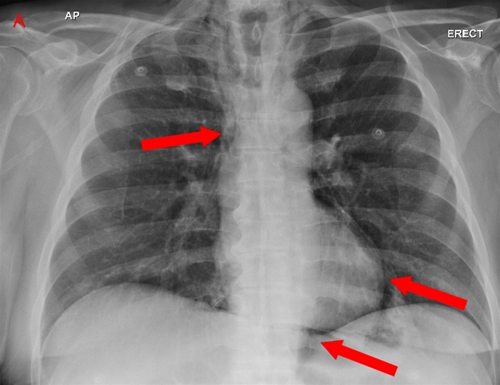 Initial evaluation includes chest radiograph, EKG, and cardiac enzymes for these complications.