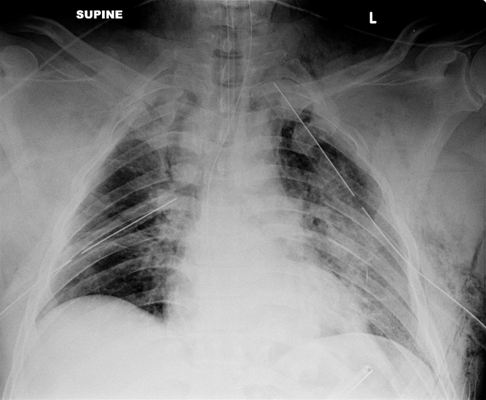 Acute respiratory distress syndrome (ARDS) is a common complication of PC. However, ARDS usually manifests 24-48 hours after trauma and demonstrates bilateral, patchy alveolar infiltrates on chest x-ray.