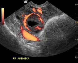 The ring of fire is the classic finding on ultrasound, and describes the increased vascular flow to the adnexa when color Doppler is applied. Note: Similar findings occur with a well-developed corpus luteum, so be careful