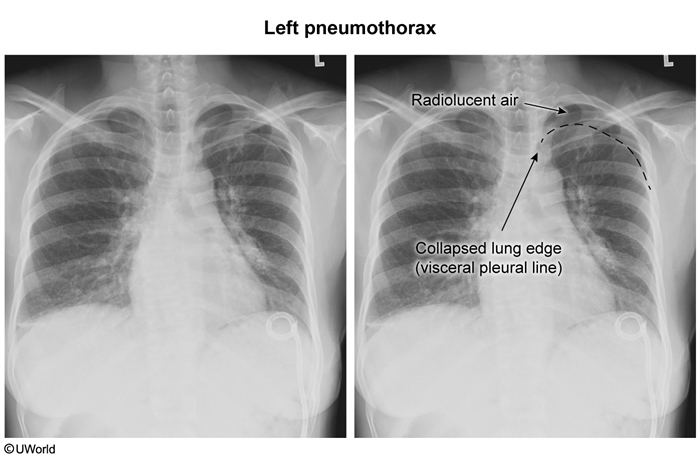 Resorption (occlusion) atelectasis occurs when an airway is obstructed by a foreign object, tumor, or thick mucus plug and the alveoli collapse. This can be identified on physical exam by an area devoid of lung sounds.