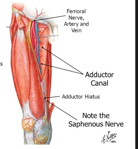 Visible long, dilated and tortuous superficial veins along the thigh and leg.