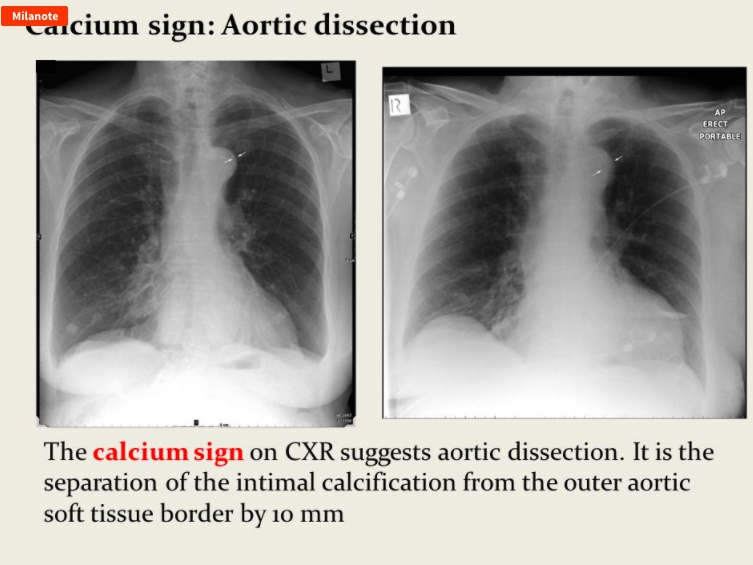 Calcium sign (displacement of the intimal calcium layer in the aorta)