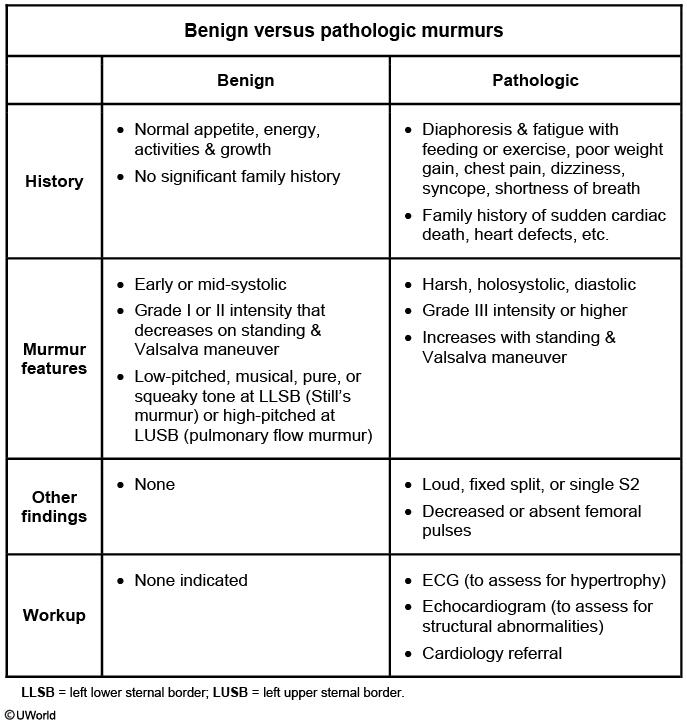 This patient's microcephaly, micrognathia, overlapping fingers, absent palmar creases, and rocker-bottom feet are consistent with trisomy 18 (Edwards syndrome). Congenital heart disease occurs in more than half of affected patients, with ventricular septal defect (VSD) being the most common abnormality. As pulmonary vascular resistance decreases after birth, VSD presents as a holosystolic murmur that is best heard at the left lower sternal border. Central cyanosis, which typically affects the trunk and mucous membranes, is not usually present with an isolated VSD, as evidenced by this infant's pink oral mucosa. This patient does have acrocyanosis, or peripheral cyanosis, which affects the hands and feet and is present in most healthy newborns.