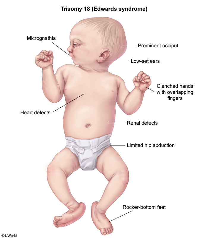 The prognosis for trisomy 18 is very poor as most affected children die in the first month of life. Surgical repair of VSD improves survival, but those who survive are severely intellectually disabled.
